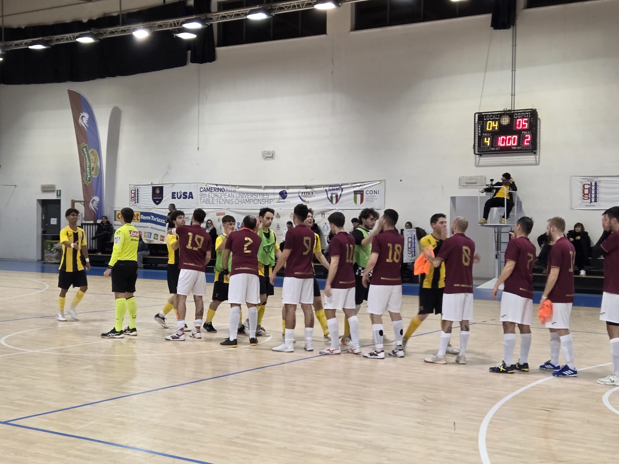 Il commento post gara del capitano Alessandro Luchetti: “Parto dal mio gol, quello del 5-4, c’è stata una palla recuperata, due contro uno per noi, ho visto Youri Coacci libero, gli ho servito la palla e mi sono fiondato sul secondo palo, la palla è tornata un po’ lunga quindi mi sono buttato in scivolata cercando di chiudere l’angolo, ho preso tutto, palo e palla, che per fortuna è entrata dentro, il Dio del futsal ci ha ridato quello che ci aveva tolto nelle gare precedenti. Sapevamo che era una gara difficile, non pensavo così tanto, ma guardando i risultati del Camerino in effetti era una squadra in forma, non quella dell’andata, ci hanno messo in difficoltà, giravano bene palla. Poi sono un po’ calati loro, mentre noi siamo venuti fuori bene alla distanza. E’ stato un periodo difficile, ma le prestazioni le abbiamo sempre fatte, tranne magari a Recanati, per il resto avevamo sempre giocato, non siamo mai stati randellati, le abbiamo tirate tutte le partite. Il gruppo è compatto. Siamo tutti centrati in allenamento, a cena insieme, determinati e uniti. L’obiettivo salvezza è raggiungibile, la classifica è corta e questo ci permette di puntare anche a quella diretta ma guardiamo partita per partita cercando di fare più punti possibili. Dopo il derby con l’Osimo Five si potrà fare qualche valutazione ma prima no, pensiamo a vincerle. Iniziando col Numana che venerdì scorso ha fermato il Recanati. Da un lato ci ha fatto un piacere ma dall’altro ci dimostra che non molla niente. Noi dovremo non sottovalutarli e al contempo far valere di più il fattore casa, dove abbiamo raccolto troppo poco. Come valuto la mia stagione? Sfortunata, sono stato fermo due mesi, e per fortuna di mezzo c’è stata la pausa natalizia, impossibile darmi un voto con così tante assenze, ma da capitano non ho saltato un allenamento e una gara, anche da indisponibile. Ora mi sento meglio dopo tre gare. Ho rimesso minuti nelle gambe, quindi potrò dare il mio contributo al gruppo dopo un infortunio sfortunato al piede, che ogni tanto si fa sentire ma stringo i denti e andiamo avanti. Ci tengo a fare i complimenti a Nicolò Lorenzini, non era facile sostituite Torriani, non ha mai saltato un allenamento. Grazie a lui e a Michele (Molinelli, ndr) ci siamo sempre allenati con 2-3 portieri, non era facile venerdì scorso per Nicolò fare una prestazione importante da titolare in una gara così delicata, merita una menzione speciale”.